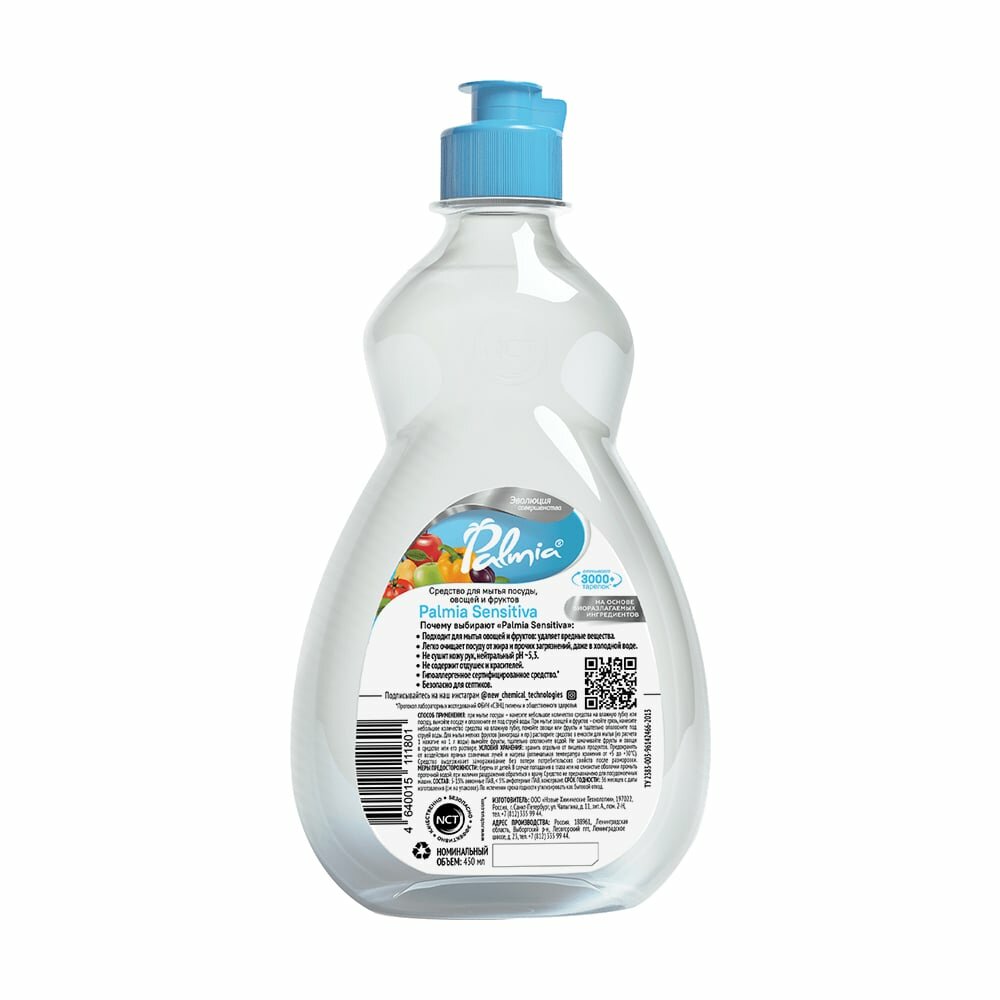 Гипоаллергенное средство для мытья посуды, овощей и фруктов Palmia Sensitiva 0,45л ПЭТ информация: