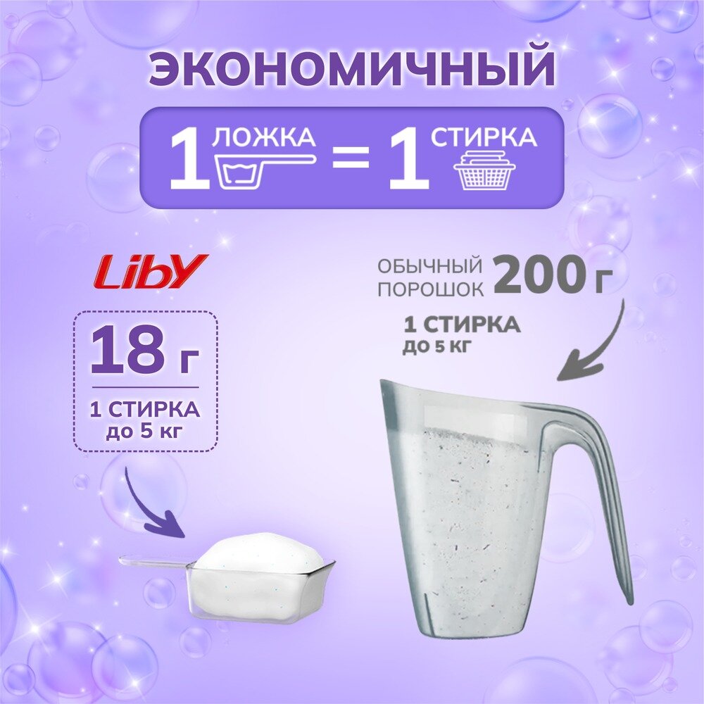 Концентрированный стиральный порошок, Liby, 900 гр информация: