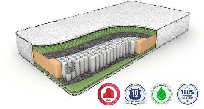 Фабрика Сна Матрас EDMOND, независимые пружины, кокос, средняя жесткость, анатомический, 90х200 см