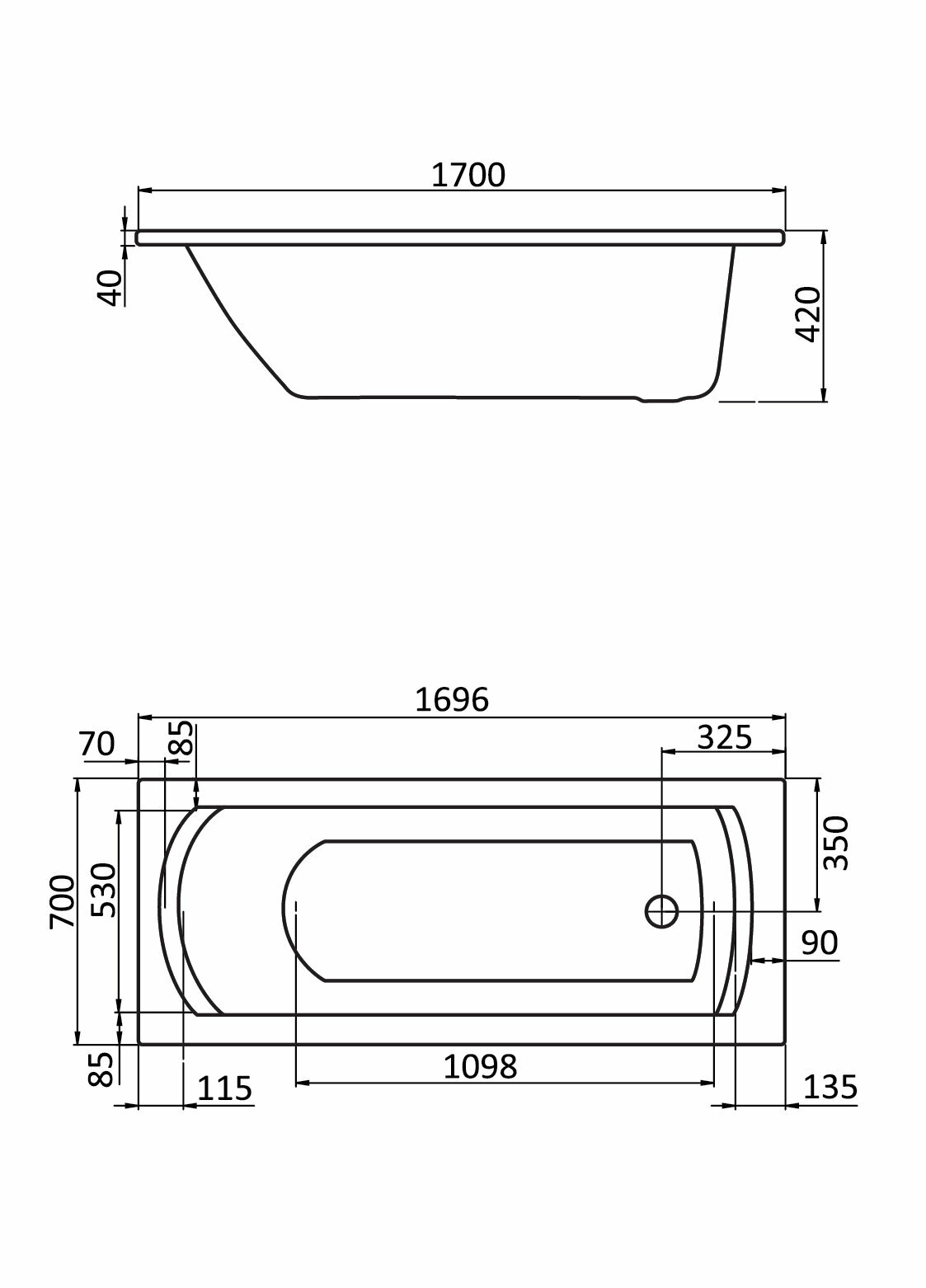 Ванна Gamma 140х70 см, акриловая, на каркасе, экран к ванне Gamma 140