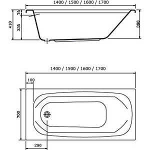 Ванна Gamma 140х70 см, акриловая, на каркасе, экран к ванне Gamma 140
