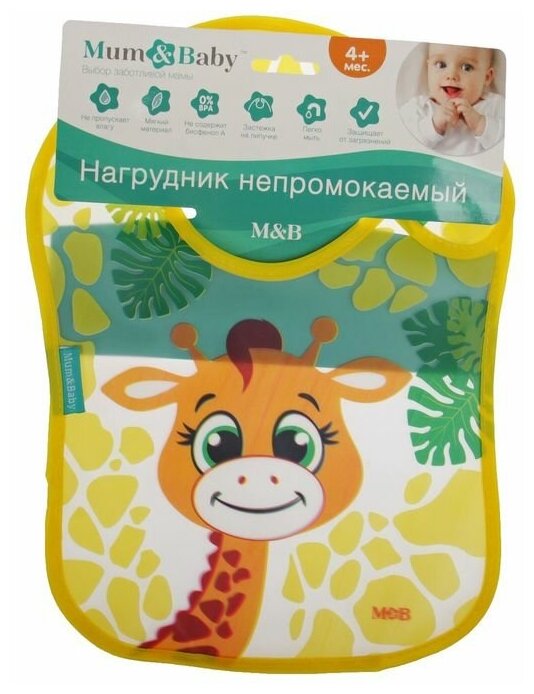 Mum&Baby Нагрудник непромокаемый «Жирафик Лило», на липучке, с карманом 616 ₽