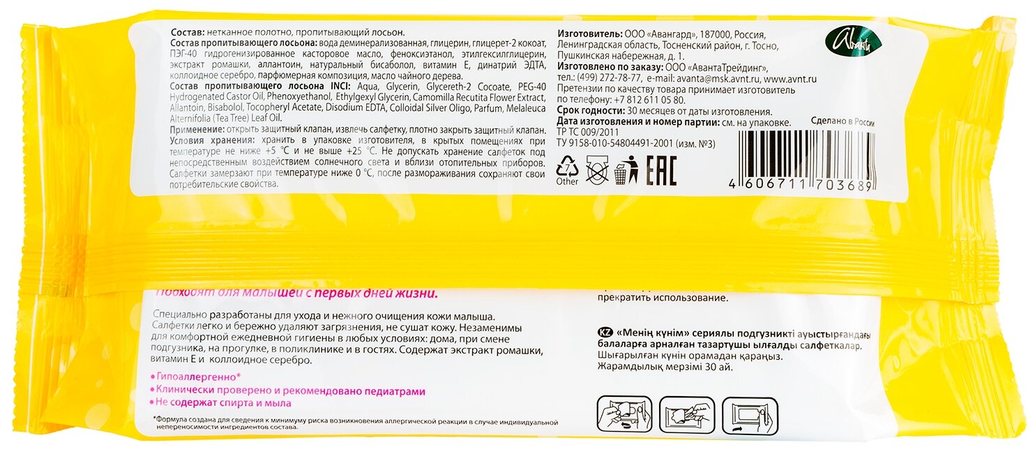 Аванта Детские влажные салфетки Мое солнышко универсальные 70 шт