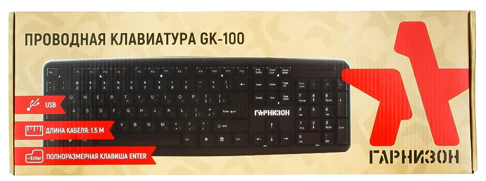 Клавиатура Гарнизон GK-100 Black USB черный, кириллица+QWERTY
