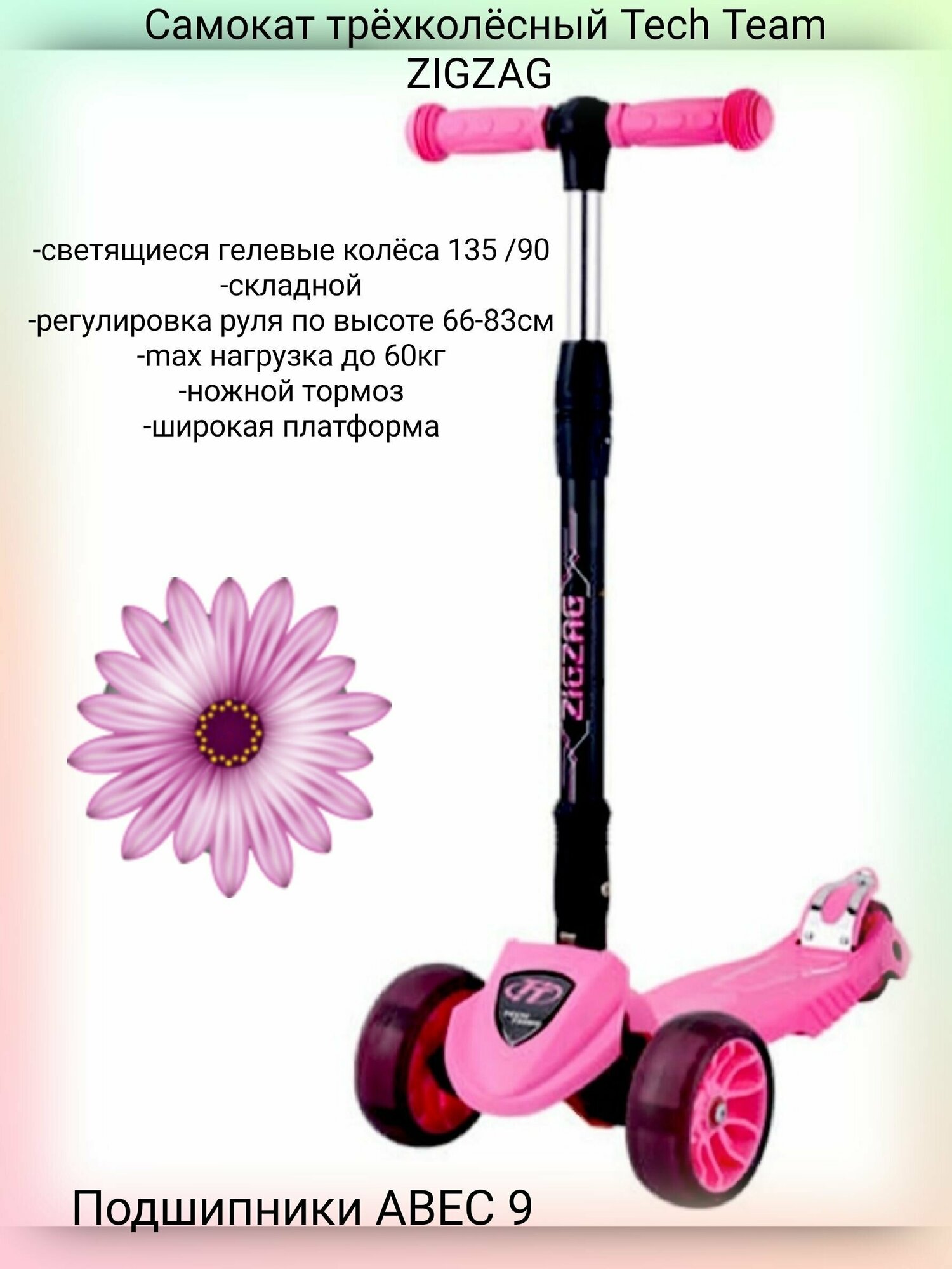 Самокат Tech Team ZIGZAG трёхколёсный розовый информация: