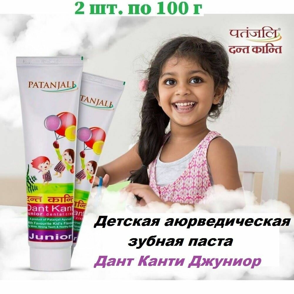 Детская зубная паста Patanjali Dant Kanti Junior,натуральная,укрепление десен,защита полости рта, 2 штуки по 100 г. информация:
