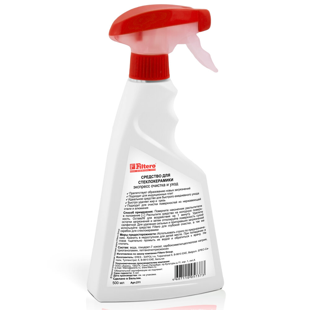 Спрей для стеклокерамических и индукционных плит, Filtero Экспресс-очистка, 500мл, арт.211 информация: