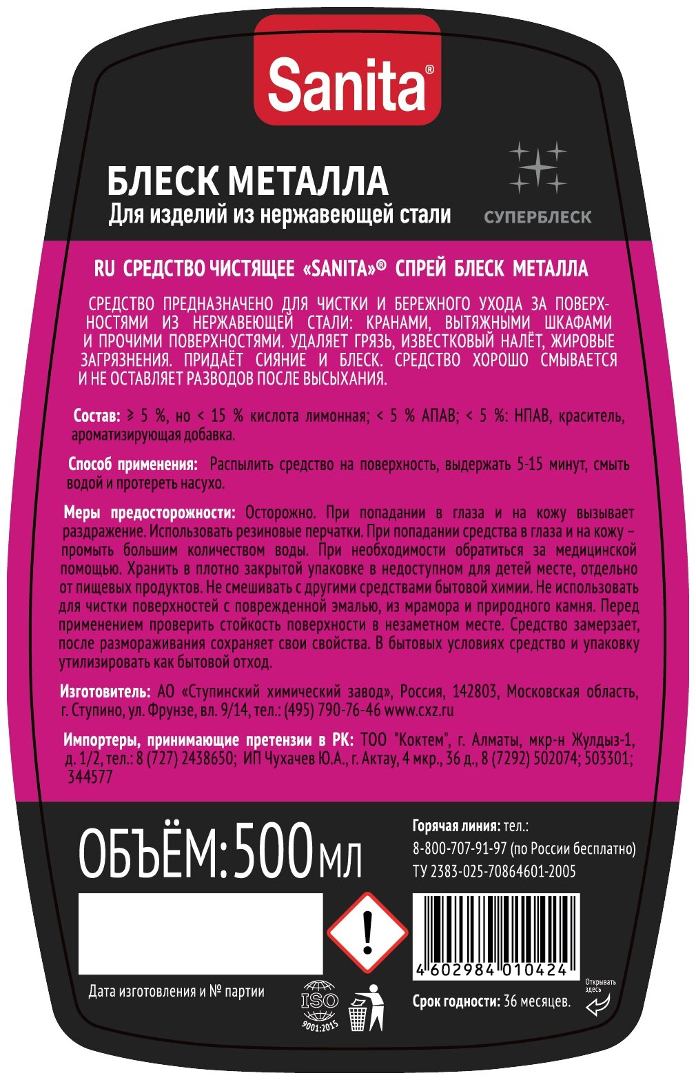 б/х_схз_sanita_спрей Блеск металла 500 5D1019 . информация: