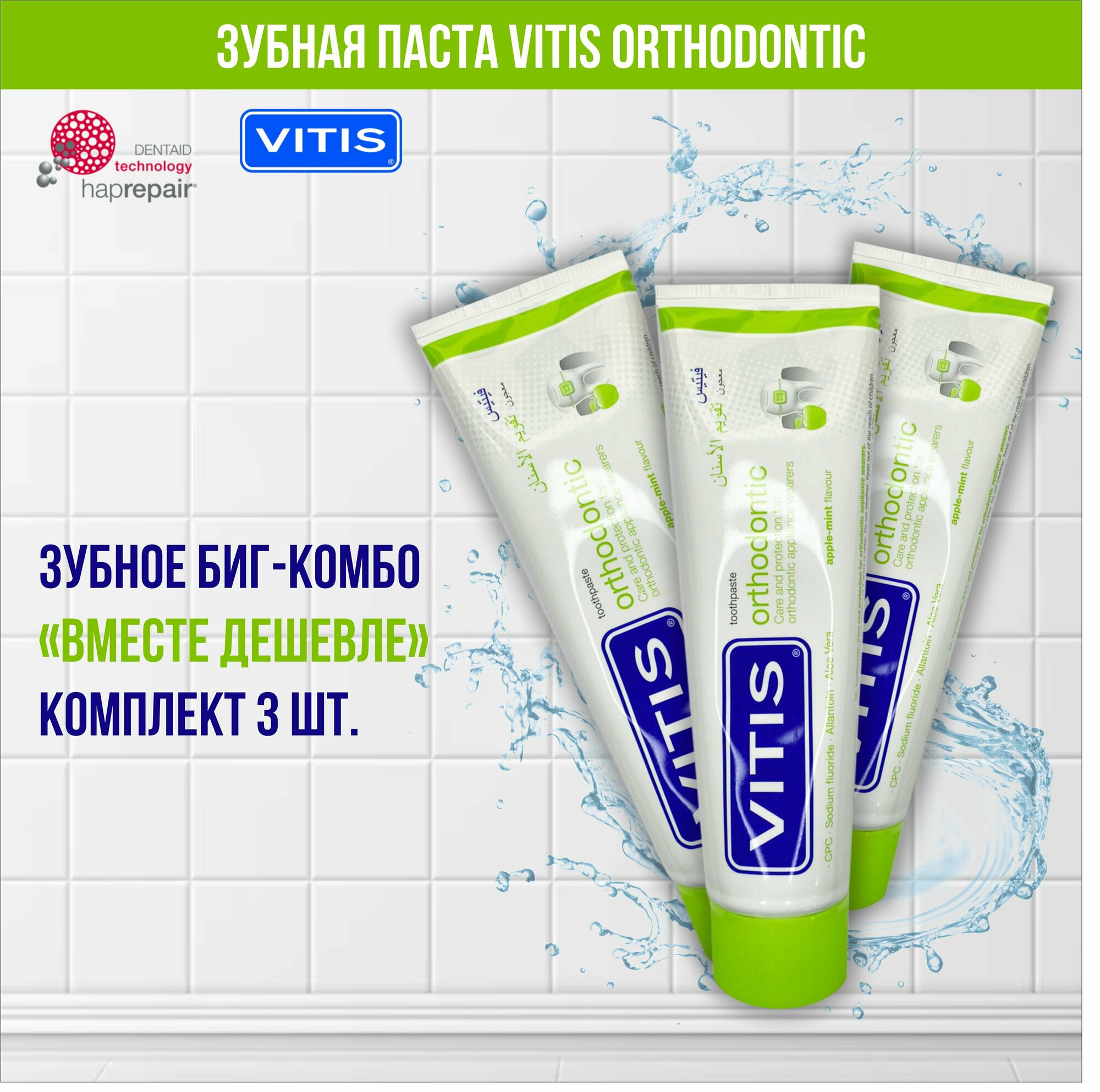 10 цен на Комплект зубная паста VITIS Orthodontic, 3 шт по 100 мл