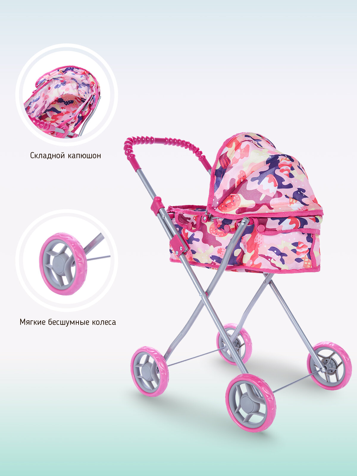 Коляска для куклы BUGGY BOOM 8011-M2007/СТ Микси роз.-фиол. информация: