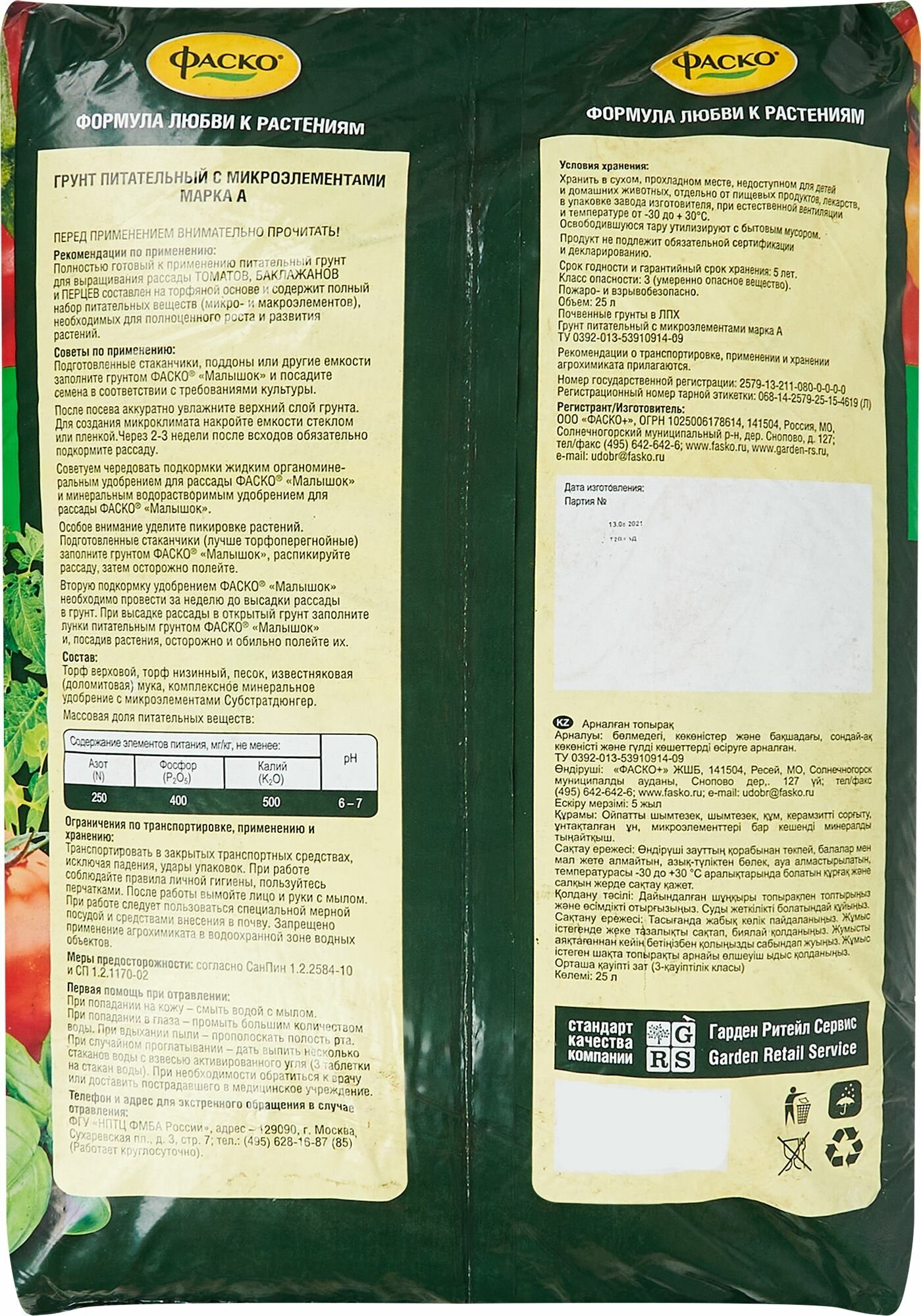 В заказе: 2 уп / Грунт для томатов и перцев 25л Малышок Фаско информация: