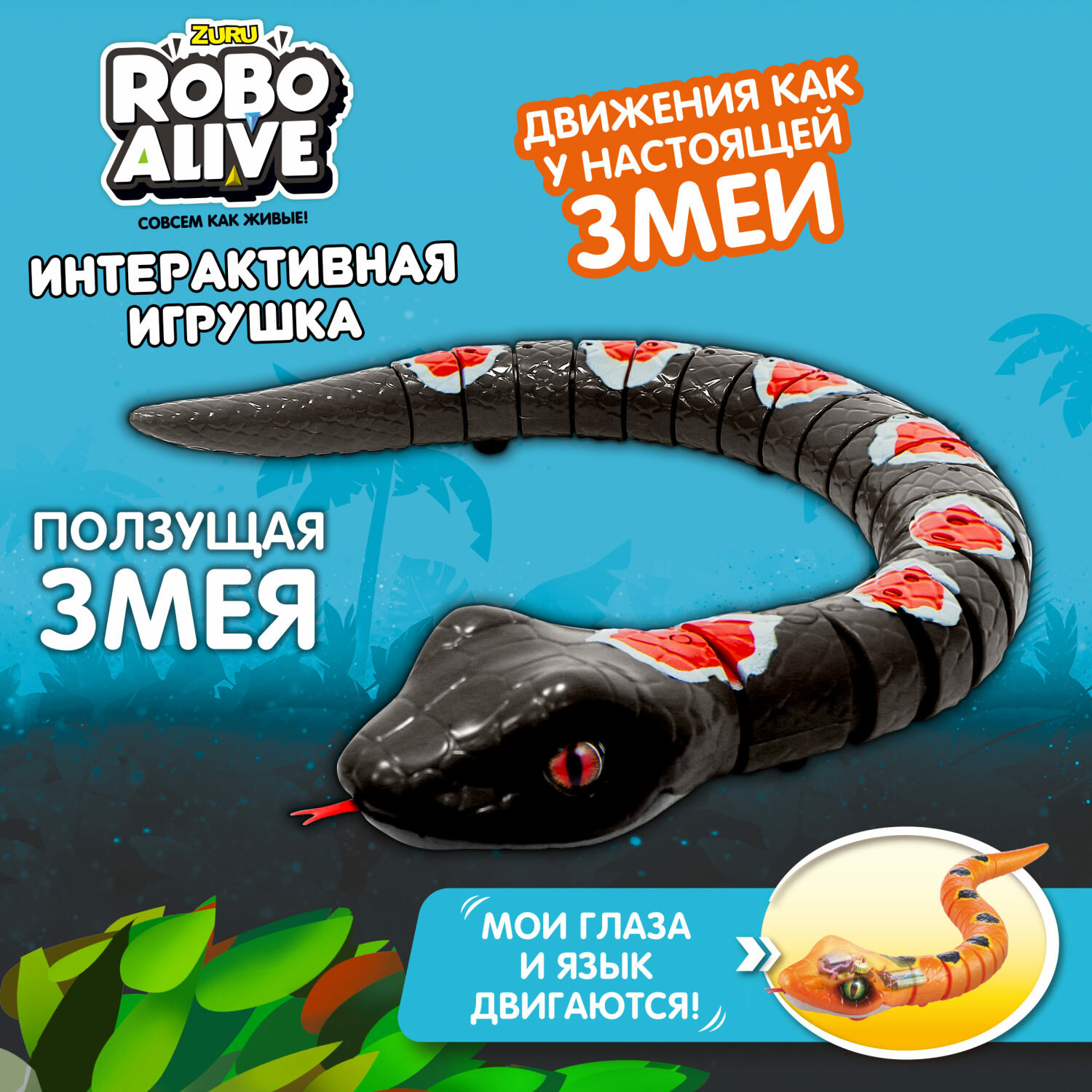 ZURU Игрушка Робо-змея RoboAlive(Графит), 2 *1,5v информация: