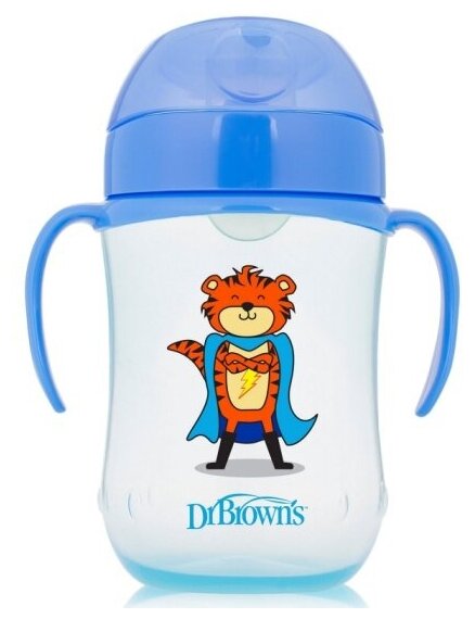 Отзывы на Чашка-непроливайка DR.BROWNS с мягким носиком, ручками и откидывающейся крышкой, 9+ месяцев, 270 мл супергерой (синий)
