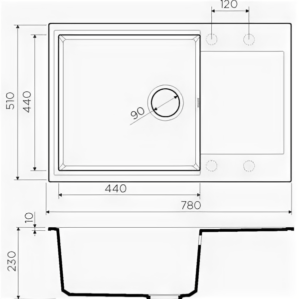 Мойка FABIA 62322L сатин врезная 78х48 см левая + большой сифон с переливом