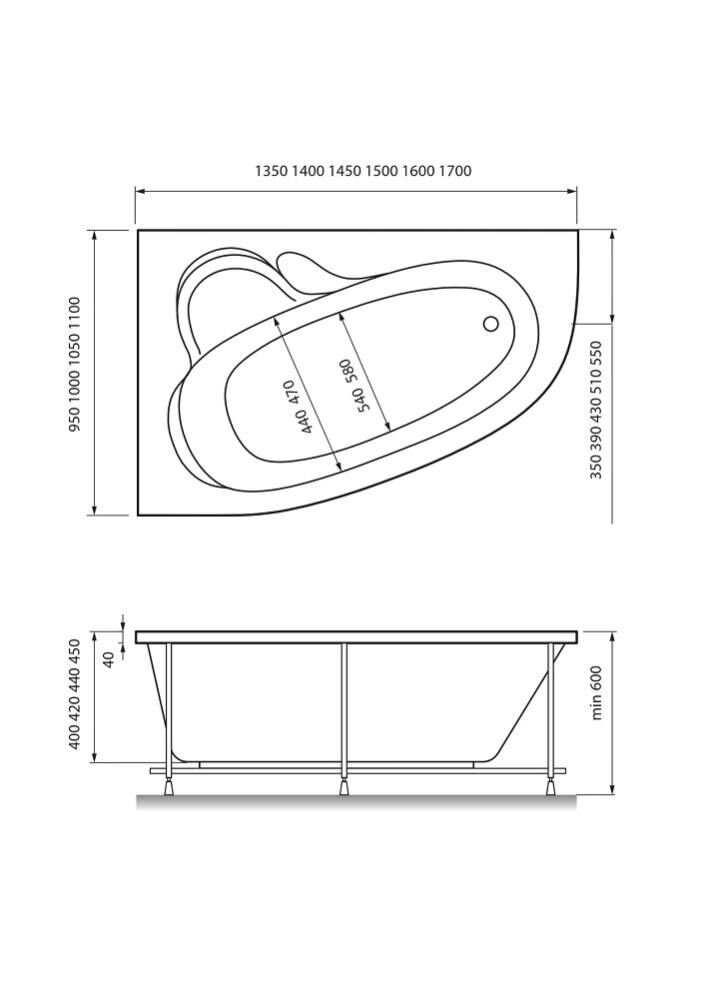 Ванна Gamma 140х70 см, акриловая, на каркасе, экран к ванне Gamma 140