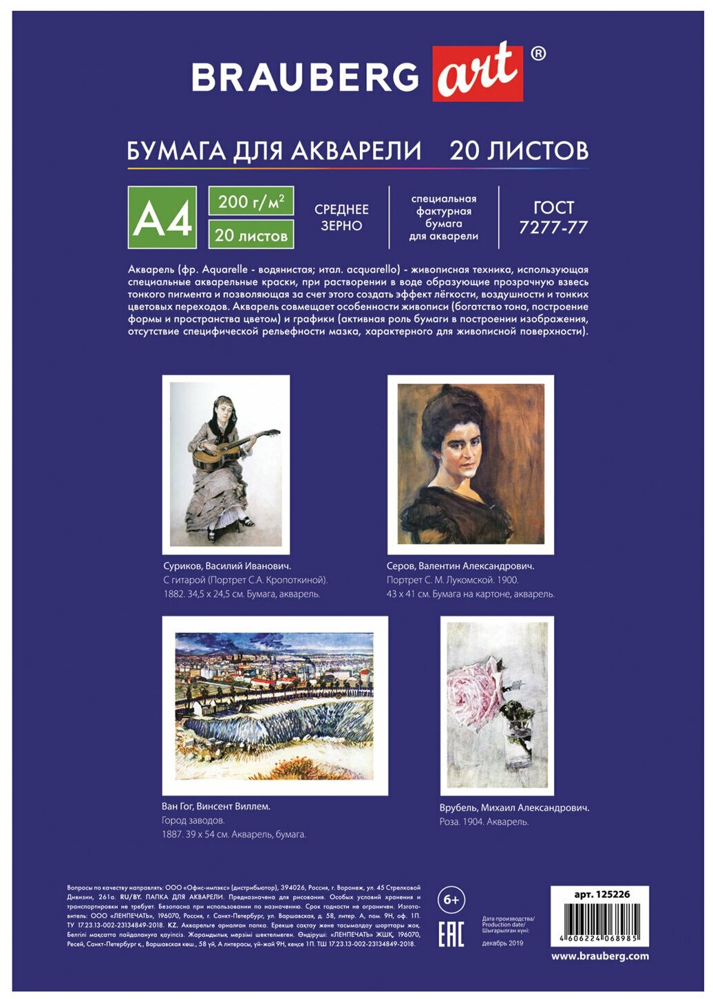 Отзывы на Бумага для акварели А4, 20 л., 200 г/м2, 210х297 мм, BRAUBERG, "Осенний лес", 125226