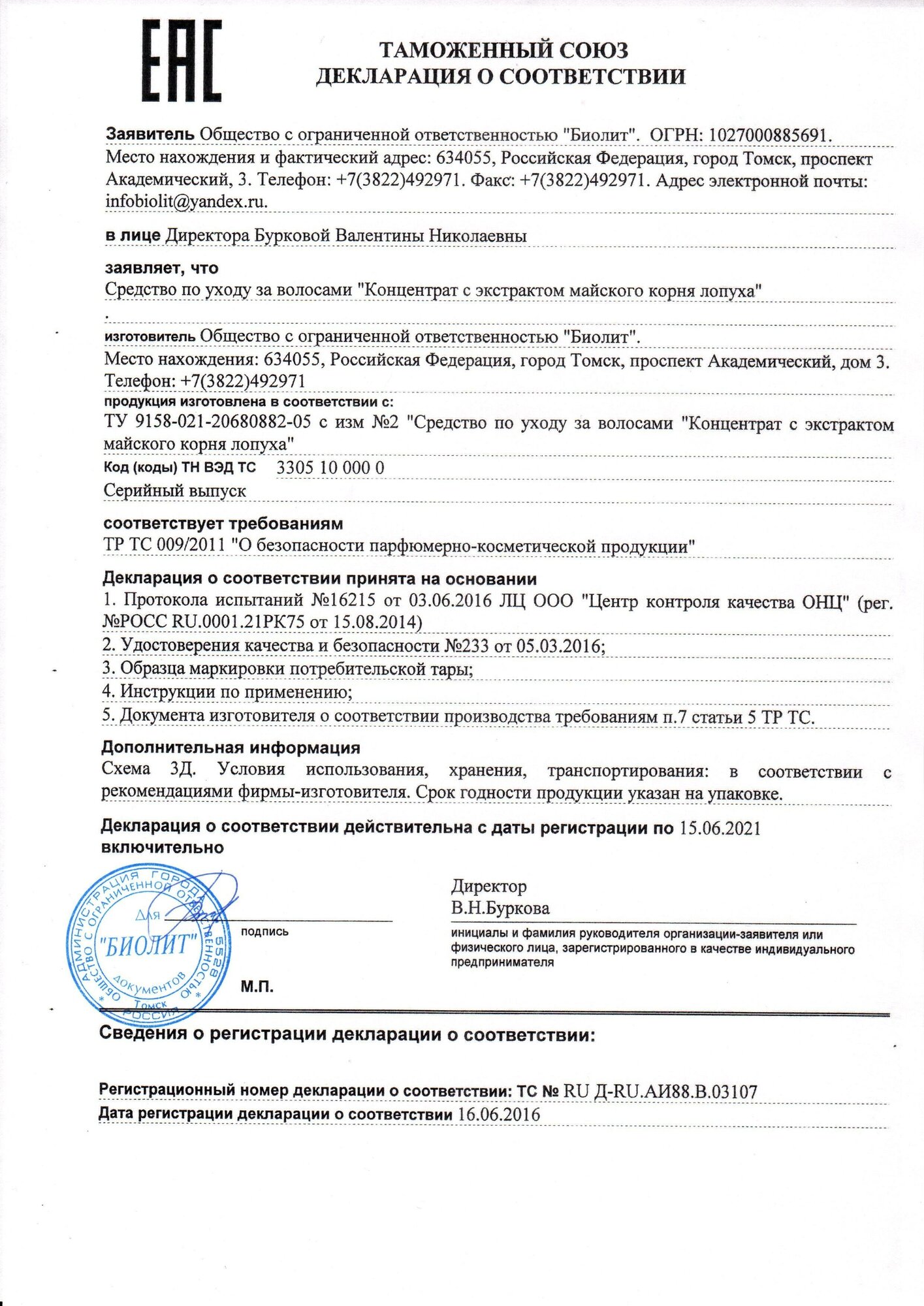 Биолит, Концентрат с экстрактом корня лопуха для ухода за волосами, 150 мл