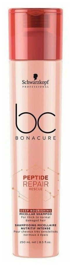 Schwarzkopf Professional шампунь Peptide Repair Rescue Deep Nourishing интенсивный питательный мицеллярный для густых и нормальных поврежденных волос, 250 мл информация: