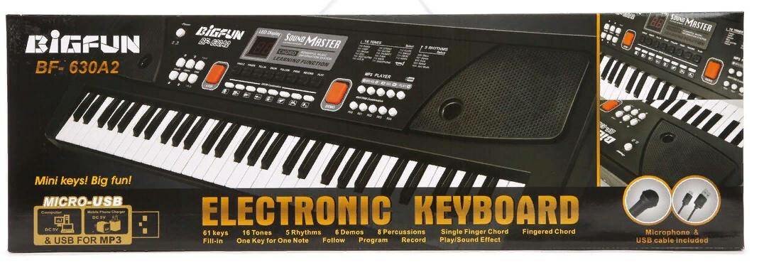 Детский синтезатор "Bigfun" 61 клавиша, запись, микрофон, черный Наша Игрушка BF-630A2 информация: