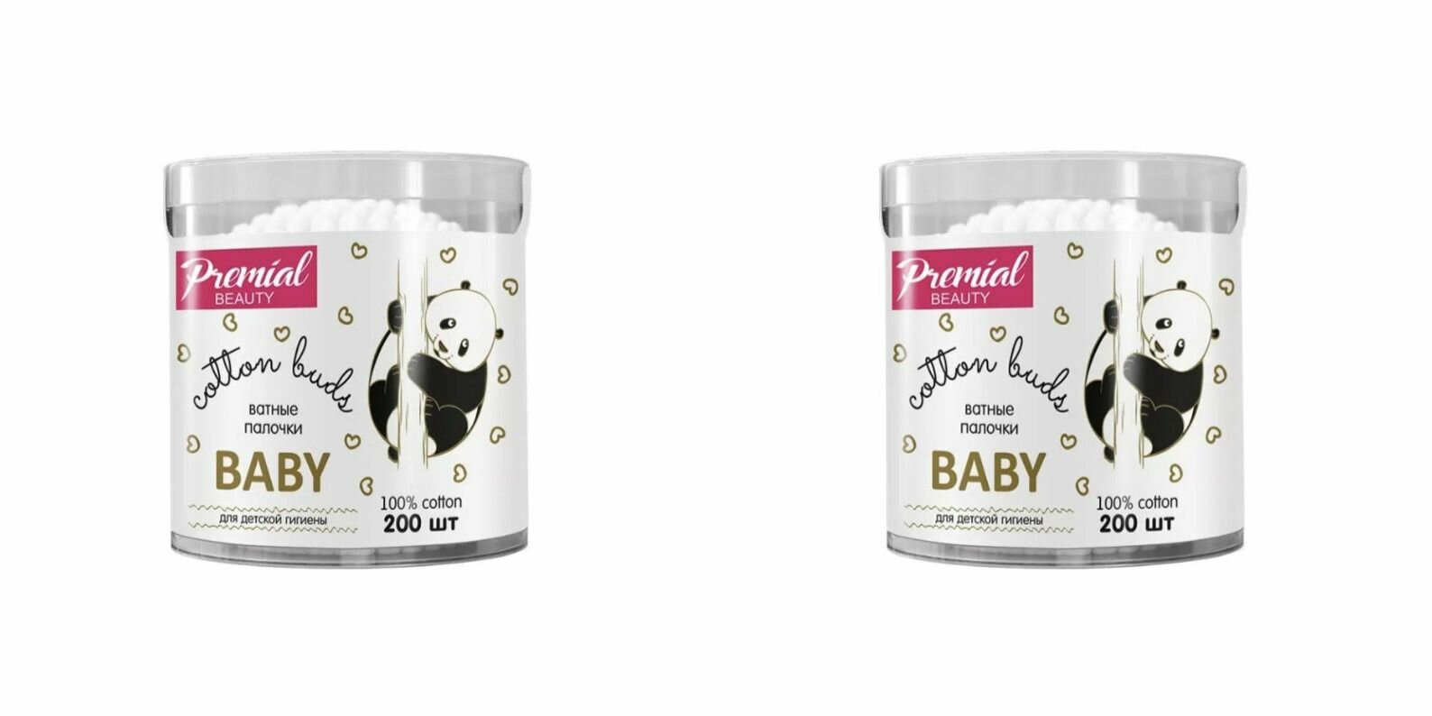Premial Ватные палочки, детские, цилиндр, 200 шт, 2 уп