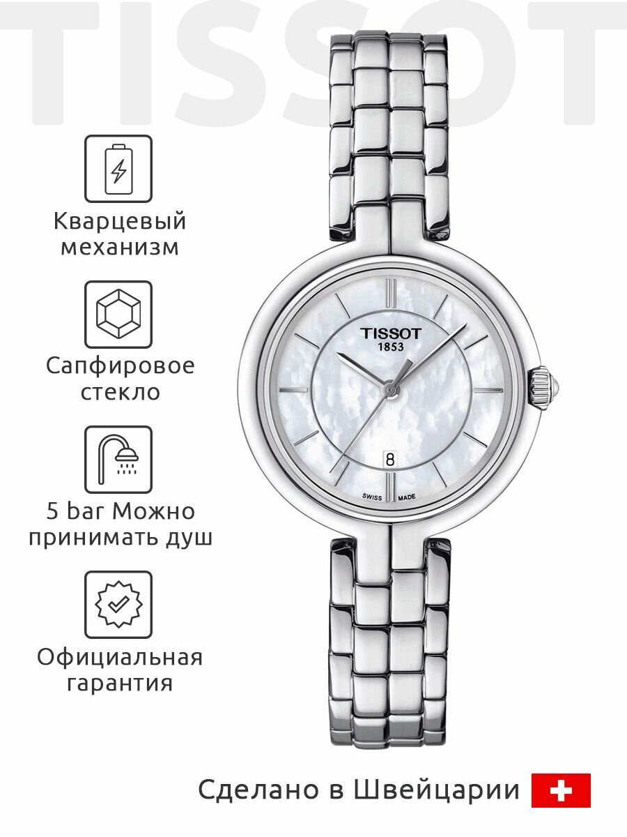 Швейцарские кварцевые часы Tissot Flamingo T094.210.11.111.00 на стальном браслете, с водозащитой 5 бар и международной гарантией от производителя