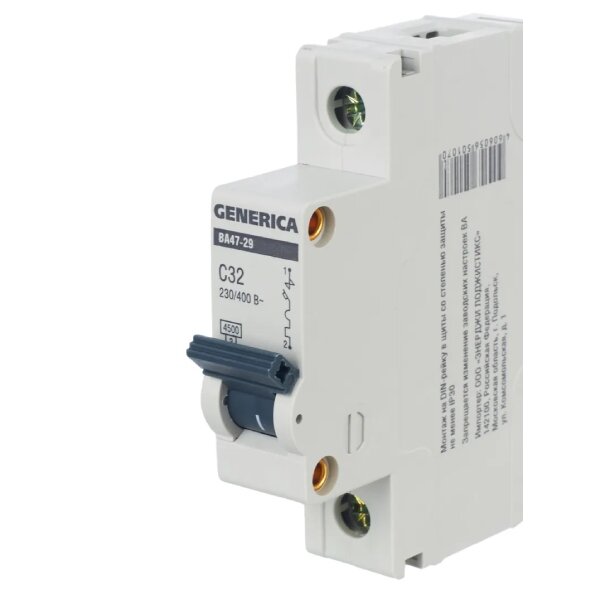 Авт. выкл. ВА47-29 1Р 32А 4,5кА С GENERICA информация: