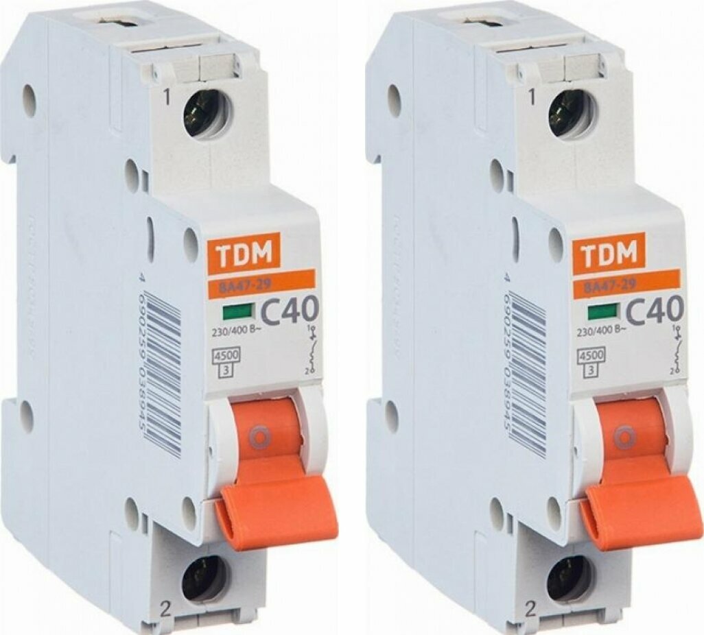 Автоматический выключатель TDM Electric ВА47-29 1P 40А характеристика C (комплект из 2 шт.) информация: