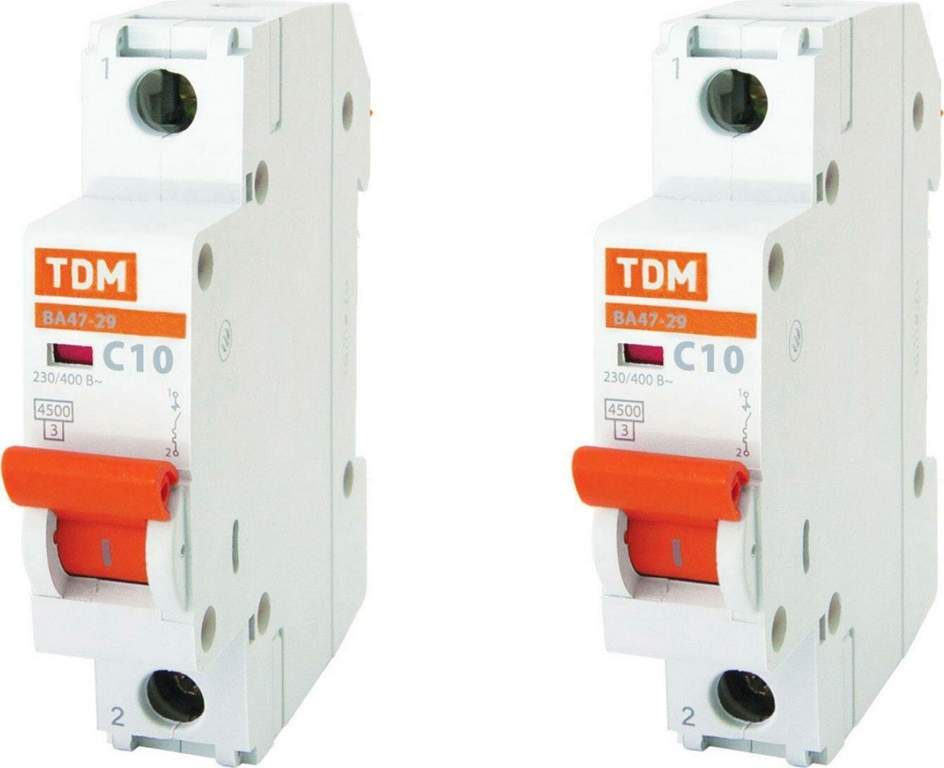 Автоматический выключатель TDM ВА47-29 1P 10А характеристика C (комплект из 2 шт) информация: