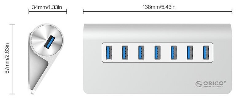 ORICO 4/7-портовый USB 3.0 концентратор, 7 Ports 100cm