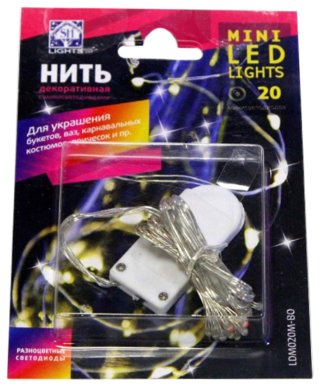 Гирлянда "Нить" LDM020WW-BO 20 тепл. бел. минисветодиодов 1.9м для помещений на батарейках, SHLIGHTS 4690601042101 (1 шт.)