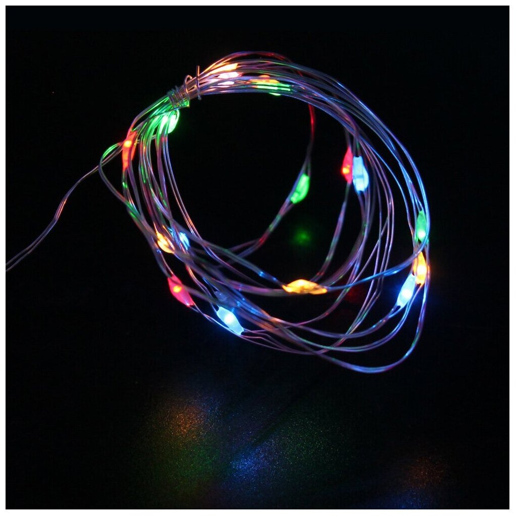 Гирлянда Нить 1,9м 20Led мульти свет на батарейках 2xCR2032 прозрачный провод IP20 LDM020B-BO .4690601042125 SHLights