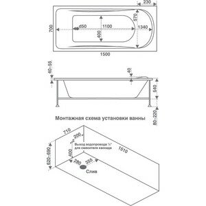 Ванна Gamma 140х70 см, акриловая, на каркасе, экран к ванне Gamma 140