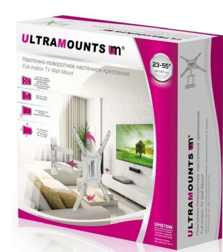 Кронштейн для телевизора ULTRAMOUNTS UM 870, 23-55", настенный, поворот и наклон, черный 1 990 ₽
