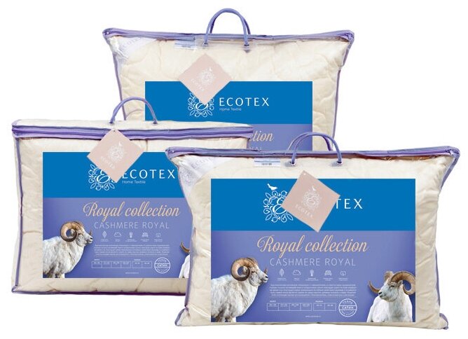 10 цен на Ecotex Подушка для сна шерстяная Кашемир козий пух/шерсть 70x70 ПКШ77 .