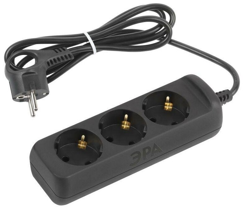 Удлинитель сетевой электрический с заземлением ЭРА UX-3e-1,5m-B 3 розетки, 1,5м, 10А, 3x0,75мм2