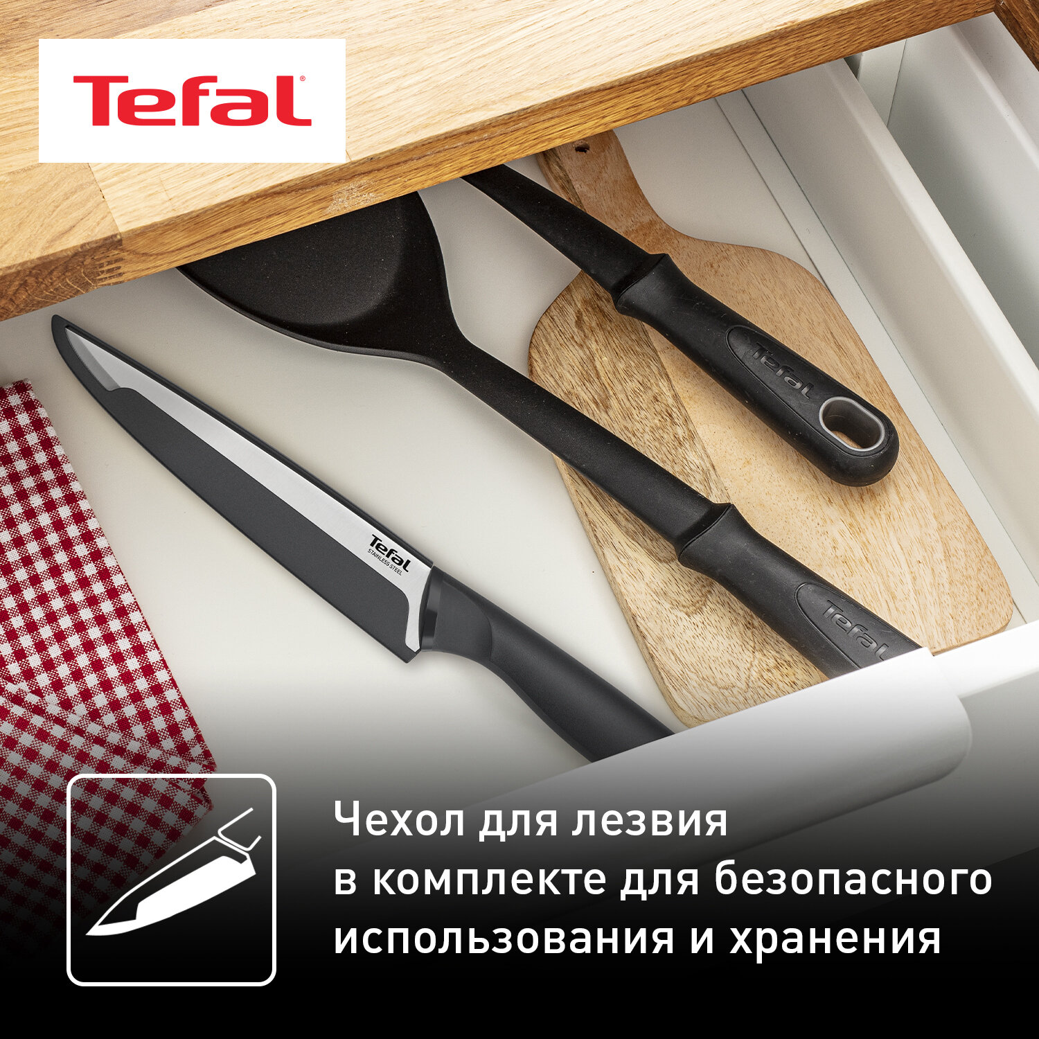 Нож кухонный Tefal K2213704, универсальный, 200мм, заточка прямая, стальной, серебристый/черный