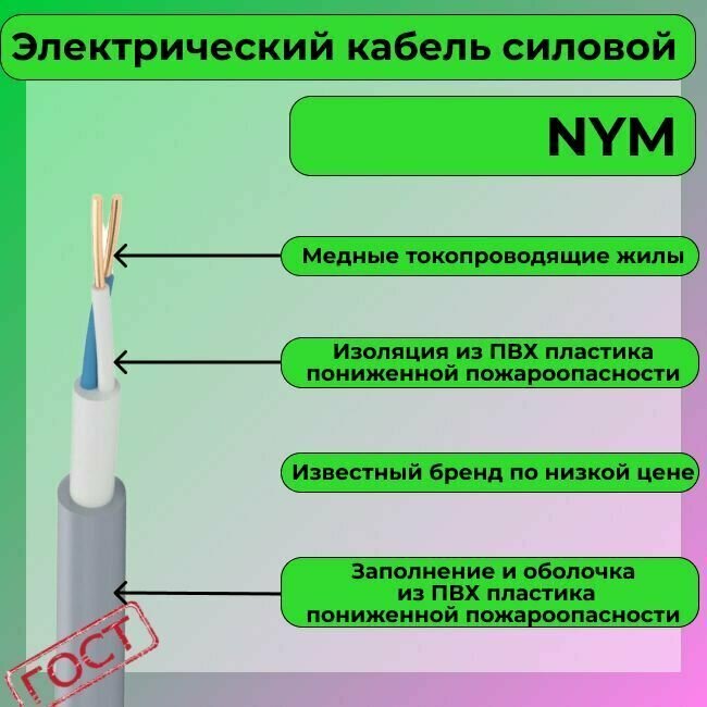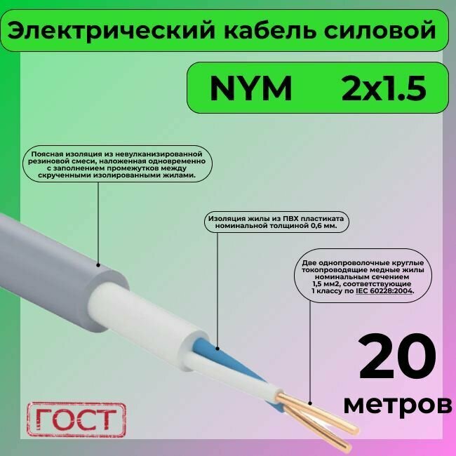 10 цен на Провод электрический/кабель ГОСТ NYM 2х1,5 (N,PE) - 20 м. Конкорд