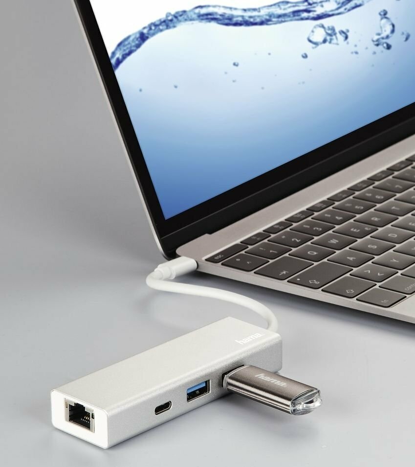 10 цен на Концентратор HAMA 00135757, USB Type-C -> RJ-45 / USB-A x 2 шт / USB Type-C, серебристый