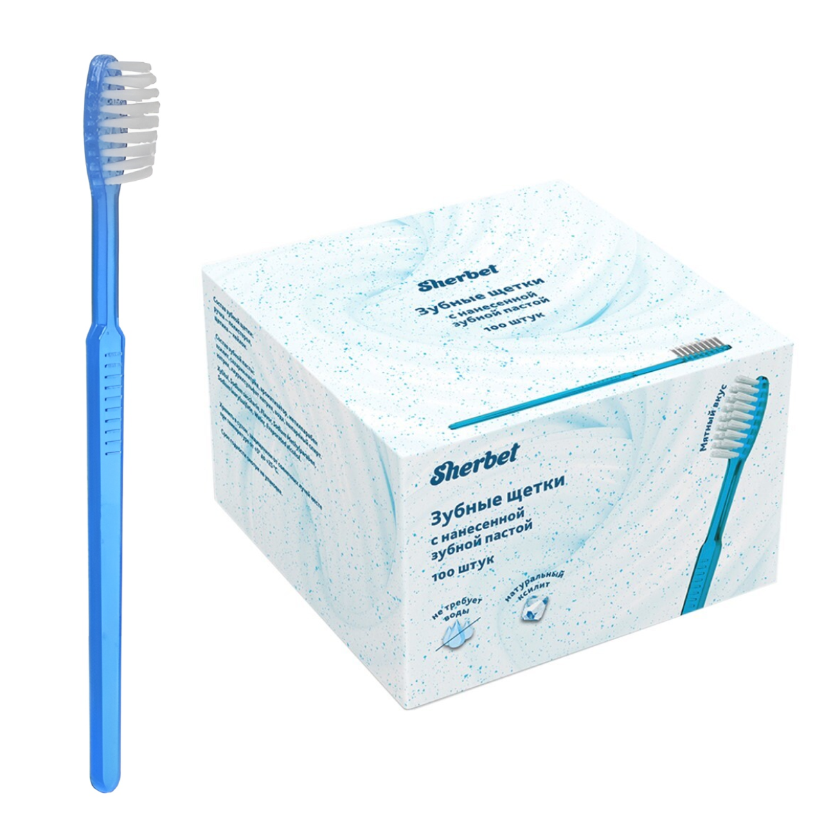 Sherbet зубные щётки с нанесенной зубной пастой, 100 шт.