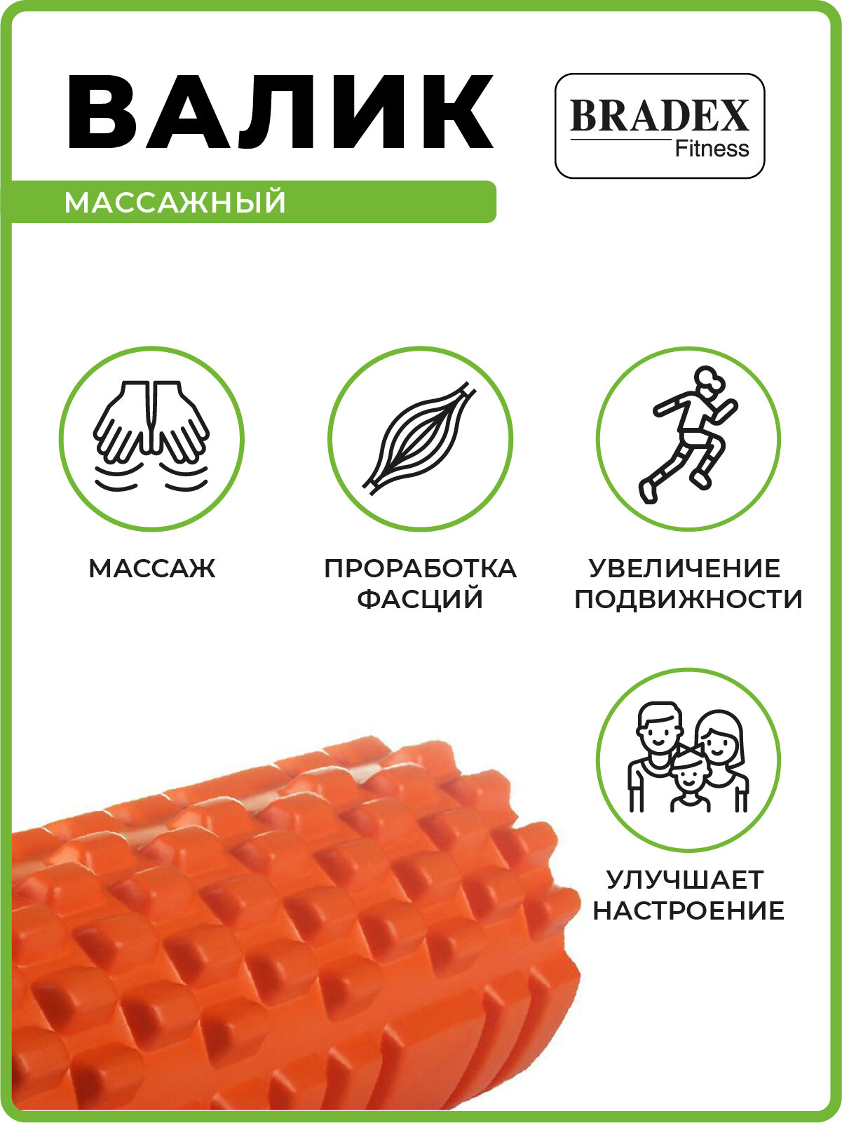 Ролик массажный BRADEX, спортивный валик для фитнеса, средняя жесткость, оранжевый 1 120 ₽