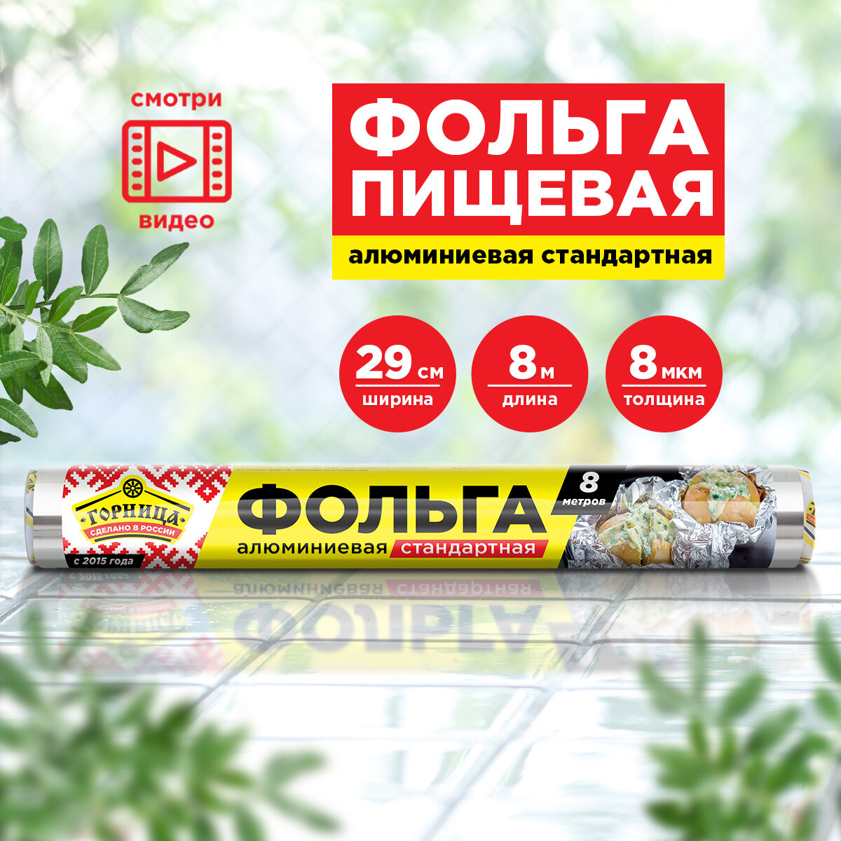 Горница Фольга пищевая 29см*8м Стандартная в пленке информация: