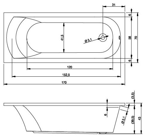 Ванна Riho Miami 170x70 без гидромассажа