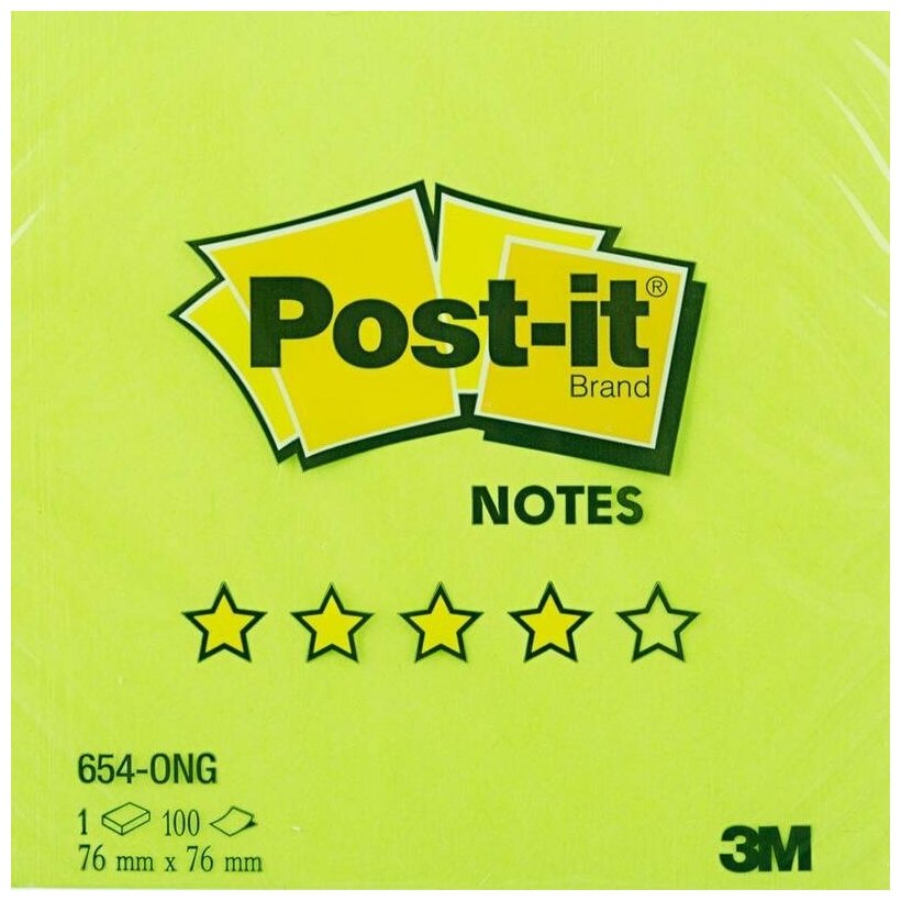 Канцелярия 3M Блок самоклеящийся бумажный Post-it Optima Весна 654-ONG 76x76мм 100лист. неон салатовый