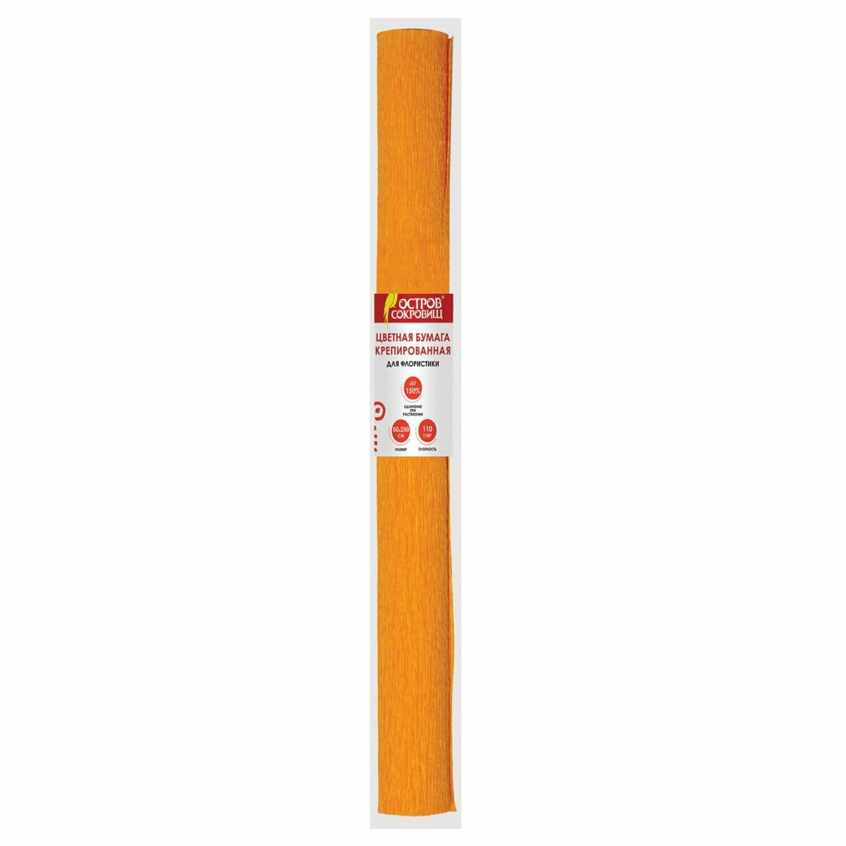 Бумага гофрированная (креповая) для флористики, 110 г/м2, оранжевая, 50х250 см, остров сокровищ, 129149 - 1 шт.