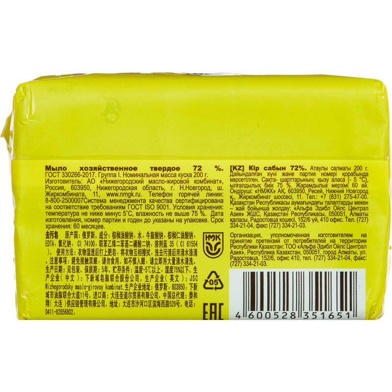 Нижегородский масложировой комбинат Нмжк Хозяйственное твёрдое мыло 72%, упакованное, 200 г