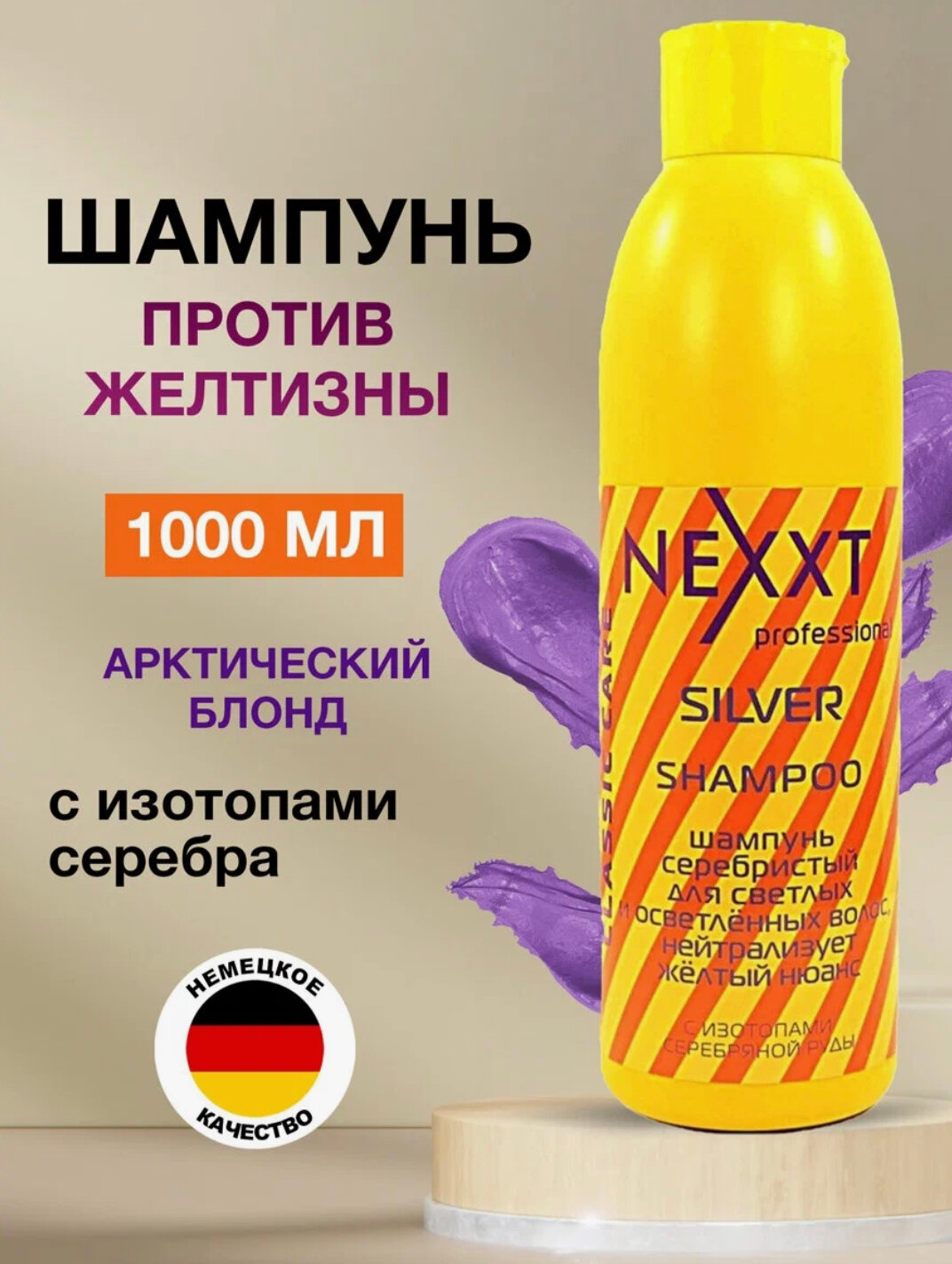 NEXXT PROFESSIONAL, Шампунь серебристый для светлых волос, нейтрализует желтый нюанс, 1000 мл
