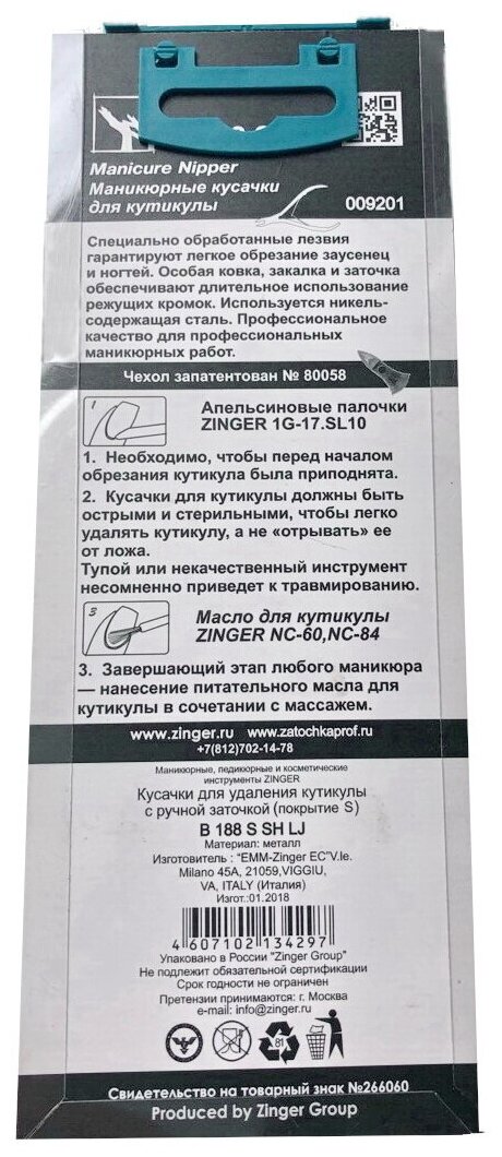 Кусачки для кутикулы (ручная заточка) zo-B-188-S-LJ-SH серебряные Zinger информация:
