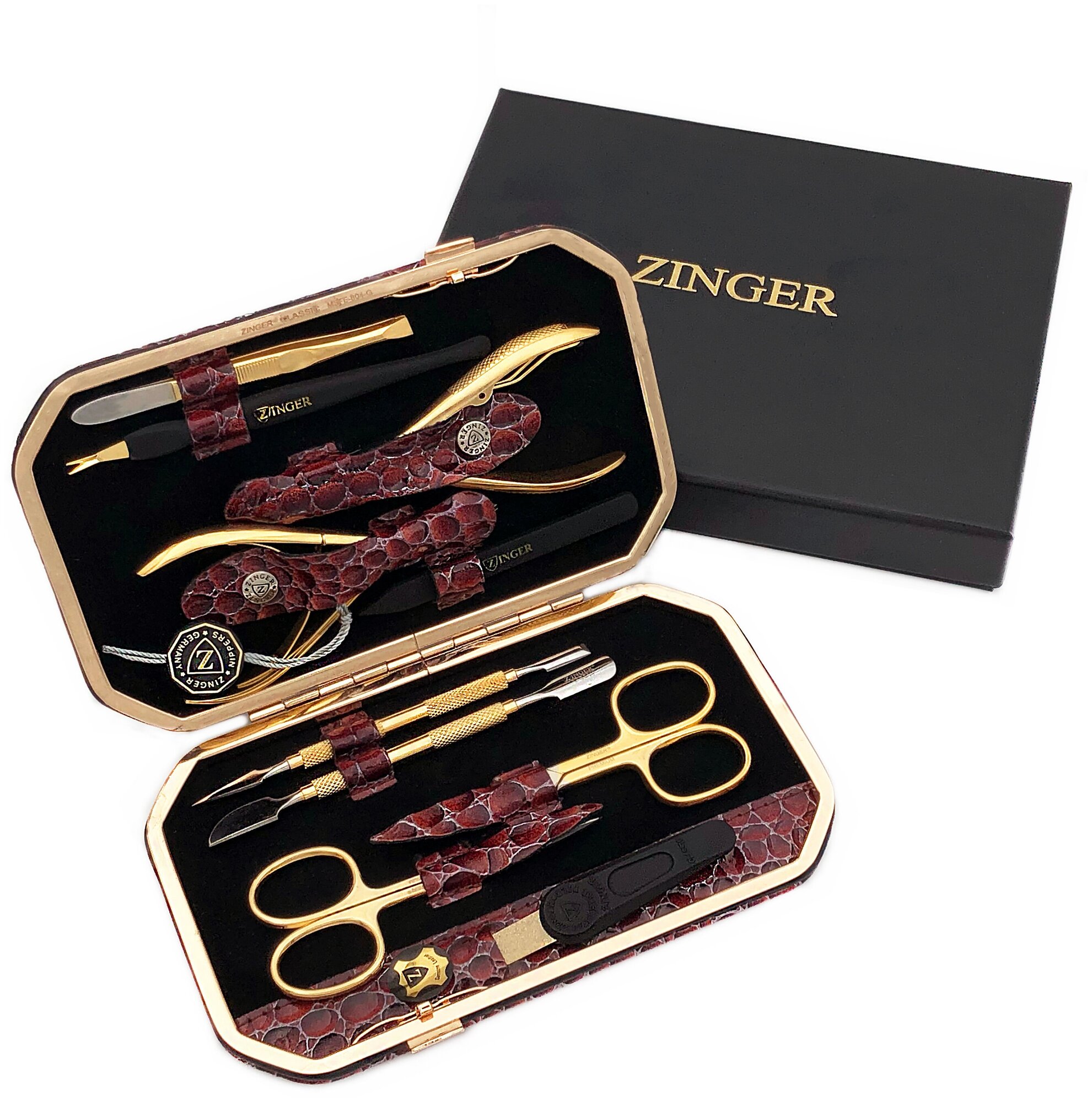 Маникюрный набор Zinger MSFE-804 G, позолоченный/красно-коричневый, 10 предметов