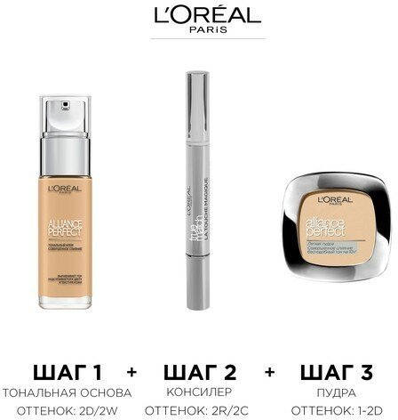 10 цен на L'OREAL Тональный крем Alliance Perfect подстраивающийся к цвету и текстуре кожи, 30 мл, 2.D/2.W
