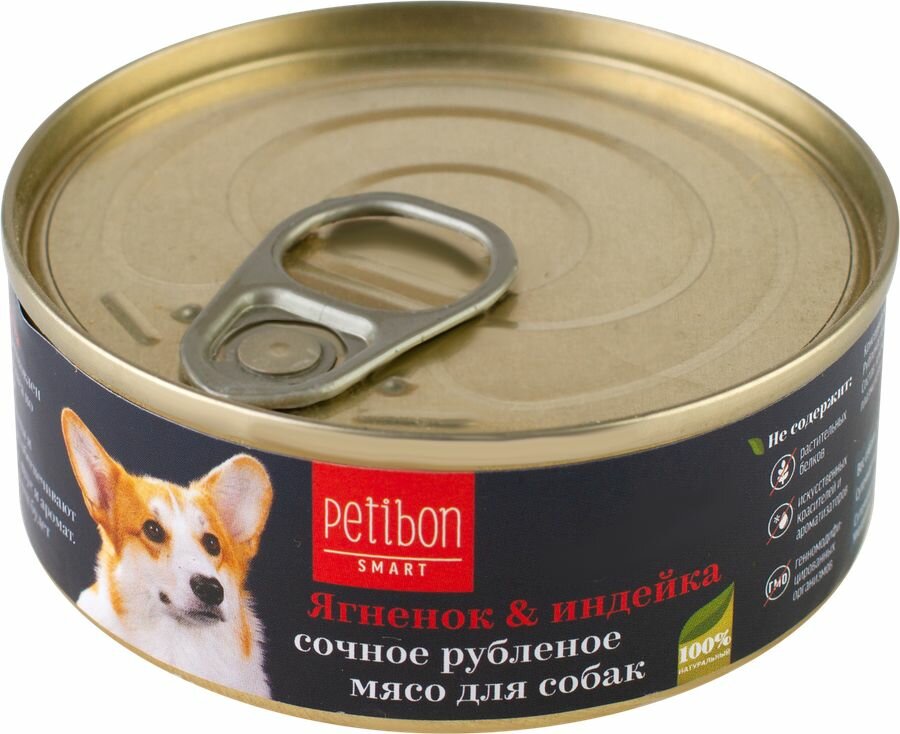 Корм консервированный для собак Petibon Smart, 100 г, рубленое мясо с ягненком и индейкой, 1 шт